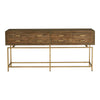 Best describe as a show stopper, the Annecy console table features an art-deco inspired aesthetic with a rustic twist. Made from reclaimed fir wood, it will withstand major wear and tear. Four deep drawers that seem to float above the brass finished frame makes it practical to keep essentials handy and airy at your entryway.
