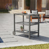 Check out the Bajarno Outdoor Bar Cart! This stylish bar cart features a modern, contemporary design perfect for outdoor entertaining. Constructed with a durable powder-coated aluminum frame and powder-coated steel surface, the Bajarno is designed to withstand the elements and built to last. The product comes with two removable shelves for extra storage, making it great for outdoor gatherings, barbecues, and more. Add style and convenience to any outdoor space with the Bajarno Outdoor Bar Cart.Specs/Dimensions: