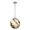 Suspended from a chrome finish, metal fixture and chain the Planetary pendant's orb features a marbling effect in white, grey, and blue. Display as lone planet or choose to expand your solar system by clustering with combination of both large and small options available in this collection.