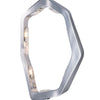 Channels of Polished Chrome stainless steel are formed by hand into an irregular shaped ring. LED modules are then recessed into the pendant frame and diffused through beveled crystals, bouncing light off the irregular surfaces to create a unique lighting effect. Coordinating non-lighted mirror pairs well with modern decor.