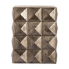 The Brady Stool is a cast alumunum rectangular stool in a dark bronze finish with sides that feature faceted pyramid detail which add unique texture. The smooth top is ideal for placing a drink, or for offering extra seating.Specs/Dimensions: