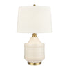 The Buckley Table Lamp is ideal for a modern Scandinavian or Millennial style living room, bedroom or hallway with its fresh palette and subtle texture. Made from earthenware in a white glaze, its surface features a zigzag relief pattern, while its metal base and appointments come in antique brass finish. Keeping the look relaxed, this design is topped with a round, hardback shade in white linen.