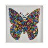 Butterfly Wall Décor is an oversize statement piece of dimensional wall art. Small colorful butterflies are collaged into a large butterfly shape and mounted on linen within a white frame.Specs/Dimensions: