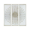 Whatever force is creating the feeding frenzy of blingy rings at the center of our Cache Wall Decor also won't let go of the eyes. Wait, are we looking down, or through a window at the sky? Hand-wrought metal in acrylic. Cool White wood frame.Specs/Dimensions:
