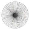 This funky and abstract wall sculpture resembles a stylized flower. It’s black iron construction gives it a modern aesthetic.