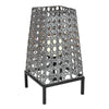 The Carus Outdoor Table Lamp is made from natural rattan in a dark gray finish, woven on a black,metal frame. The gaps formed by the loose, basket weave allows light to filter through this macrame style design. This outdoor lamp is a perfect height for placing next to a sunlounger or patio seating and brings an updated twist to the trend for organic materials.