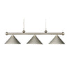 These collections provide simplified elegance with beautiful variations of metal and glass. These triple light models work well over a pool table or kitchen island to provide optimal illumination and a touch of class.