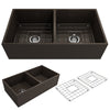 From the BOCCHI Contempo collection, this double-basin kitchen sink comes in Matte Brown. Made of Fireclay, this Farmhouse Apron Front sink measures 36" x 19" x 10".