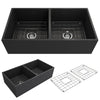From the BOCCHI Contempo collection, this double-basin kitchen sink comes in Matte Dark Gray. Made of Fireclay, this Farmhouse Apron Front sink measures 36" x 19" x 10".