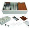 - Exclusive high pressure casted, organic fine fireclay construction with workstation ledge and accessories