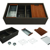 Beautifully complementing both traditional and contemporary kitchens, Contempo Step Rim sinks maximize the workspace in the kitchen with integrated work spaces and help keep workspaces clean. The ultimate in work space functionality with their special designed cutting board and colander options. Contempo Step Rim farmhouse sinks come in a wide single bowl and a large double bowl options. Form fitting sink rack, strainer and wooden cutting board are included with each Contempo Step Rim Farmhouse sink.