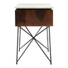 This charmingly retro nightstand offers a white marble table top, with sheesham wood construction and elegant, powder-coated iron legs.