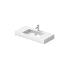 The Vero Wall Mount Sink from Duravit measures at 19.38" x 41.38" x 5.13". This Rectangle vanity top with sink is available in White and is made of durable and easy to clean ceramic.Product Description: