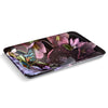 - Decorated with a dramatic floral pattern on black background.