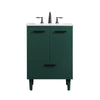 Modern sophistication is defined with the green finish and black barpulls of this vanity and slender tapered legs. Its length makes it the perfect addition to any sized home, and saves space with its storage area hidden behind the double cabinet doors and one bottom drawer. Topped with a highly durable engineered stone countertop and a porcelain undermount sink, this modern design will become your focal point of your bathroom or powder room. Equipped with soft-closing drawer and doors adds a quiet functional touch.Product Description: