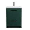 Modern sophistication is defined within the urbane green finish and black barpulls of this vanity. Its length makes it the perfect addition to any sized home, and saves space with its storage area hidden behind the double cabinet doors and one bottom drawers. Topped with a highly durable resin white counter top and an integrated sink, this modern design will add everlasting class to your bathroom and powder room.Product Description: