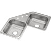 From the Dayton collection, this stainless steel double bowl kitchen sink comes in Elite satin. This rectangle Corner sink measures 17" x 31.88" x 7".Product Description: