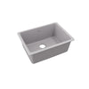 Elkay Quartz Classic 24-5/8" x 18-1/2" x 9-1/2", Single Bowl Undermount Sink. Sink is molded with up to 80% natural quartz and high performance acrylic resins that are non-porous providing superior heat, scratch, fade and stain resistance. Naturally sound deadening and Rear Center Drain placement. Add style and convenience to your home with this single kitchen sink.