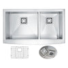 Upgrade your kitchen with the Elysian 32.88" Double Basin Farmhouse Apron Kitchen Sink with Square Drain in Brushed Satin from Anzzi. This Rectangle basin sink will pair well with your choice of faucet.