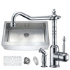 ANZZI presents the 36 inch ELYSIAN SERIES hand crafted farmhouse kitchen sink. Representing the latest in modern home fixture designs and traditional European crafting technique this stunning display of artistry is hand shaped to perfection using RHINO ALLOY certified 18 gauge 304 stainless steel. Only ANZZI hand crafted farmhouse kitchen sinks utilize RHINO ALLOY certified materials for superior strength and quality. The cavernous deep soaking basin will comfortably accommodate the largest dish loads including pots, pans and more. And every ANZZI sink features the largest Echo-STOP sound dampening pads available and a layer of protective composite coating to further quiet noise and prevent condensation. Well defined diversion lines ensure quick and total water drainage and the subtly curved corners allow of easier cleaning. ANZZI carries a proud tradition of crafting long lasting, quality home fixtures. Included with your kitchen sink is one of our premium faucets. ANZZI is committed to introducing the latest in European bath fixture design to the North American home. ANZZI presents the Winston Single Handle Kitchen Faucet with Sprayer. Crafted using lead-free RHINO ALLOY certified brass as the interior and our Traditional Polished Chrome rust resistant finish. With ANZZI perfection is our tradition.
