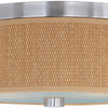 This Elements Flush Mount is a 2 light drum shaped light fixture. The shade is made of Grass Fabric around the outside wall and has a glass bottom. It offers a modern feel to your space with it's playful design.