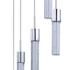 During the manufacturing of the glass, bubbles were introduced while the glass was still molten, creating a carbonated effect. By using LED lights from above, the unique bubbles in the glass refract light in various ways, resulting in a truly contemporary style of lighting reminiscent of champagne. And suspending the individual pendants in a spiral waterfall pattern provides a modern symmetry to match the contemporary minimalist fixture.