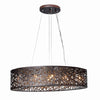 By encircling suspended crystals with a laser-cut bronze shade with a cognac glass finish, the 12" Inca Linear Pendant produced a unique glow inspired by the lost treasures from the Inca empire. And with 9-lights producing 4500 lumens, the light is functionally bright while providing an atmosphere that fits in both contemporary and traditional settings.