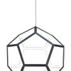 Formed by a series of Black pentagons into a spherical shape, this geometric collection is illuminated from the inside for a dramatic lighting effect. Available in 3 sizes ranging from 22" to the dramatic 40" large pendant.