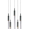 Slender beveled cut rods of bubble glass, illuminated by high power LED modules, suspend in an array of fashionable configurations. Available in Black Chrome with Clear bubble glass and Anodized Bronze with Champagne bubble glass.