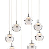 This 19" x 5.5" Swank Multi-Light Pendant has an adjustable hanging height of 7.25" - 127.5". All of the 8 orbs have clear glass on the outside with frosted glass on the inside distorting the integrated LED. With a damp safety rating, this fixture is safe for high-humidity locations like bathrooms or any other space inside your home.
