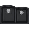 This double basin sink with a 50/50 divide makes it easy to organize your cooking and cleaning tasks. At 33" this large sink is made of a granite composite material that prevents scratches, stains, and other damage. Available in a dark onyx finish to complement any kitchen style and decor.