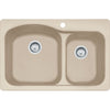 Choose your look with this dual-mount sink from the Gravity Collection. A single pre-drilled faucet hole makes drop-in installation simple, and included installation hardware makes it easy to undermount this large sink. Add functionality with wide corners and an easy-to-clean double basin along with modern or contemporary style with the smooth mocha finish.