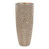 A Phalanx is an ancient geometric Greek and Roman military formation where, with shields up, disciplined ranks march forward or hold their ground as a single and impenetrable entity. With its cheek-by-jowl Distressed Gold pyramidal carvings, our beautiful Geometric Textured Vase captures the beauty and symmetry of such antiquity while remaining a fresh and contemporary decorative element.Specs/Dimensions: