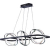 This 13.75" x 10" Gyro II Linear Pendant has an adjustable hanging height of 8" - 129". This light fixture looks like the rotation of a charged particle, giving it a stunning design that is sure to draw eyes. The beautiful integrated LED rings can configured to your liking. Imagine this dynamic light in your home.