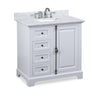 Add farmhouse style to your bathroom remodel with the Hillsdale Freestanding Vanity. This 37" vanity is compact, but still provides plenty of counterspace and strorage for your bathroom essentials. The single door and two full drawers are all soft-close to protect against slamming. A faucet is not included, but the counter is pre-drilled, compatible with the three-hole widespread facuet of your choice.