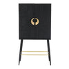 The Hope bar cabinet has a sleek black finish that is accented with beautiful brass detailing. Equipped many racks, it is highly functional for storing liquor