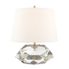 A table lamp sometimes adds a visual weight that helps anchor a space at the same time it illuminates it and provides a decorative accent. Henley’s dense base of multifaceted crystal has that effect. A perfectly proportioned shade of Belgium linen completes this glamourous addition.Specs/Dimensions: