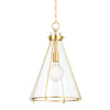 Eldridge is a minimalist cage pendant with maximum style. Light pours through the glass shade and allows the lamp socket within to shine. Available in a conical and a dome shape with Aged Brass, Old Bronze or Polished Nickel finishes, these pendants suspend from gorgeously detailed hook and loop chains.Specs/Dimensions: