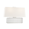 Dense blocks of furrowed glass resembling works of imposing architecture, Hague adds textural depth to a space. Its nickel finish and linen shade contribute to its air of cool modernism.Specs/Dimensions: