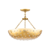 Like jewelry for the wall or ceiling, Dalton adds sparkle to any space. Aged Brass shades are interspersed throughout with rounded glass cutouts that catch the eye when unlit and create an absolutely captivating glow when lit. Available as a sconce and two different pendant sizes.Specs/Dimensions: