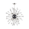 Liberty starts with a core of matte-black metal, banded round its middle with a flashing contrast from the piece’s finish of choice—brass or nickel. Retro coil bulbs in ballooning clear glass create the primary light source; in larger models, tubular exposed-filament bulbs alternate. Cut-crystal discs and icy handcrafted glass adorn protruding rods, refracting the dazzling light in a thousand directions.Specs/Dimensions: