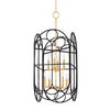Inspired by art nouveau windows, Garrett's overarching theme is classic… with a kick. Large arches and loops of black iron seamlessly flow from one to the next creating a recognizable cage shape around the light source. The pendant, in two different sizes, suspends from a refined stem-and-loop chain while the wall sconce reflects light off the backplate. Both fixtures add a fresh feel to any space.Specs/Dimensions:
