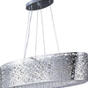 The 9-light Inca Linear Pendant features a immaculate polished chrome laser-cut shade over suspended crystals to elicit The mythical hidden treasures of a lost era. The result is a cozy and nostalgic ambient lighting with a touch of romance.