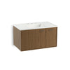 Breathtaking design meets unrivaled craftsmanship. No detail was overlooked in the meticulous crafting of this collection, from the premium hardwoods to the specially designed hardware and vanity tops, all available in an array of finishes to create your own look. This Jute bathroom vanity combines the warmth of wood with a sleek wall-hung installation for a fun play on mid-century modern design. Complete your vanity cabinet with a coordinating top, hardware, and accessories from the collection.