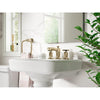 This widespread bathroom faucet supports a flow rate up to 1.2 gallons per minute, comes in a vibrant french gold finish, and is covered by a lifetime limited warranty. Drain included.Product Description: