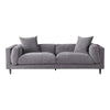 A sofa that feels like sinking into a big hug. The Lafayette Sofa features dark grey fabric upholstery filled with foam, feather, and fiberfill for that luxurious feeling. it's solid eucalyptus wood, plywood, and rubberwood legs make for a fabulous sturdy construction.