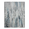 Lasting Texture is a set of three oversized abstract panels. Through textured accents and a shifting palette of blues, grays and white, this triptych brings a sense of moving waters. Silver metallic details add another layer of dimension. This design has been hand painted on canvas and finished with a black floating frame. Its style is perfect for adding color and texture to a contemporary or coastal style interior.Specs/Dimensions: