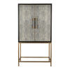 - Material: Shagreen Patterned Polyurethane | Brass Legs | Plywood | Solid Black Oak Frame