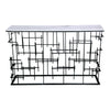 The Matrix console table has an intricate iron base, paired perfectly with the simple elegance of a marble surface.