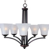 The minimalist 26" x 23.5" Aurora Single-Tier Chandelier features a frame of straight square metal tubes with an oil-rubbed bronze finish and curved arms extending from the middle. The arching metal arms hold the frost glass shades with a flared-squared shape in a square fixture, making for a great mix of of modern minimalism with sleek contemporary curves. And with five 5,750 lumen producing E26 medium incandescent bulbs (not included), this single-tier chandelier combines style and function.